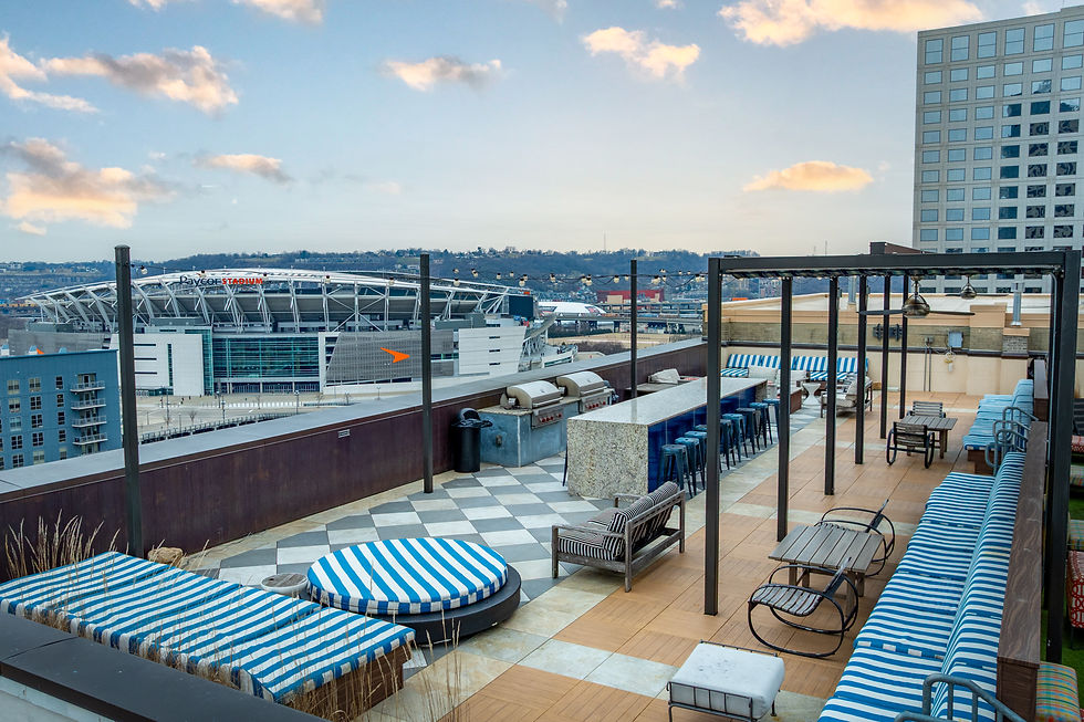 The rooftop is this building's best kept secret. You'll have a hard time finding a better view of PayCor Stadium, Great American Ballpark, and The Roebling Bridge.